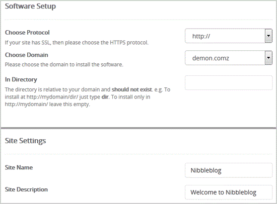 - Admin Username: Your new Nibbleblog username (for security reason do not use the "Administrator" or the "Admin" username.)