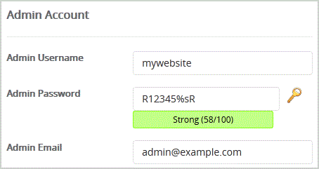 8. Under the "Admin Account" field enter the following information: