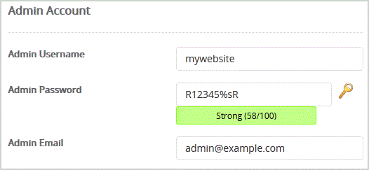 8. Under the "Admin Account" field enter the following information: