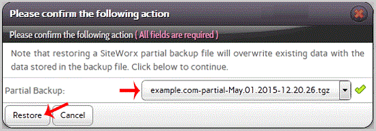 . .Hosting company,. "Restore account from backup" babies and select the "Use a file already on the server" option from the ..