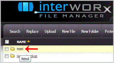 3. Navigate to the directory where you want to upload your files to. For example, . your file to the public html folder, you need to go to /html first. On the left side you can see a list of directories. Double. "html" folder.