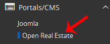 . On the left side of your screen you should locate the "Portal/CMS" category. Click on it and then. "Open Real Estate" link that will appear.