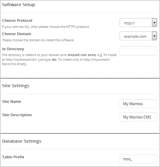 • Site Name: Enter the name of your website, such as "Mambo".