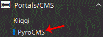 . On the left side of your screen you should locate the "Portal/CMS" category. Click on it and then. "PyroCMS" link that will appear.