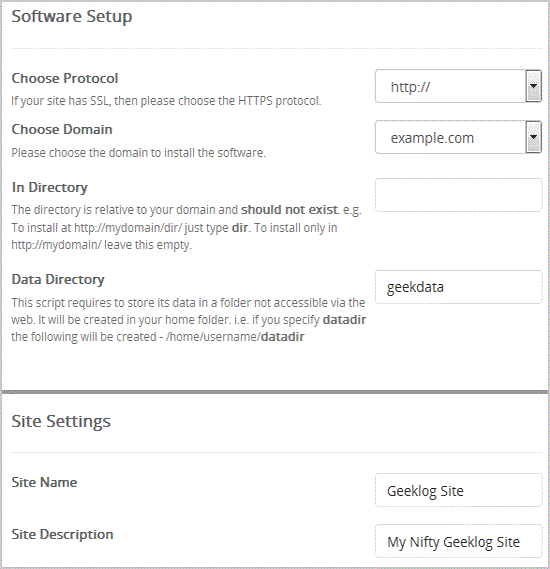 • Site Name: Enter the name of your website, such as "Geeklog".