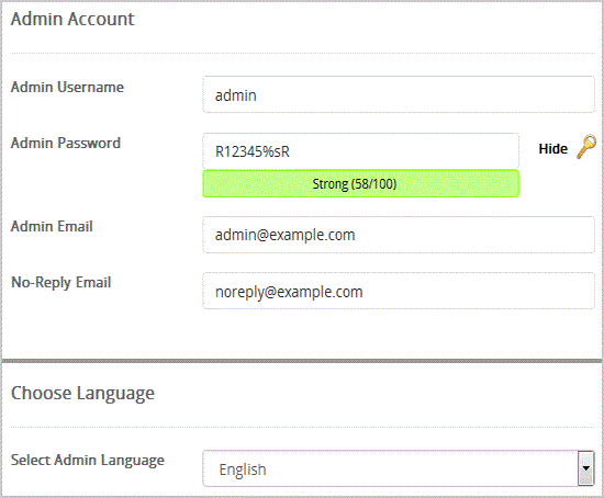 • Admin Username: Your new Geeklog username (for security reason do not use the "Administrator" or the "Admin" username.)