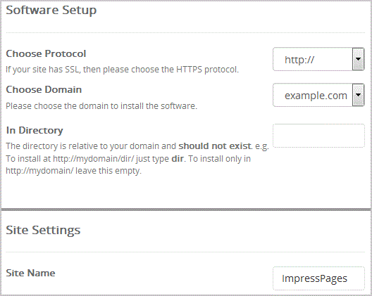 Site Name: Enter the name of your website, such as "ImpressPages ".