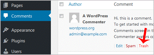 5. Choose "Comments" from the dashboard and then the "Trash" option will appear. Now click it.