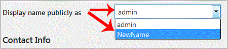 4. In the option "Display name publicly as", choose your newly added nickname from the drop-down ..
