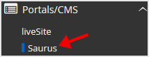 . On the left side of your screen you should locate the "Portal/CMS" category. Click on it and then. "Saurus" link that will appear.