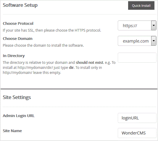 - Site Name: Enter the name of your website, such as "WonderCMS".