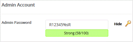 8. Under the "Admin Account" field enter the following information:
