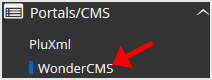 . On the left side of your screen you should locate the "Portal/CMS" category. Click on it and then. "WonderCMS" link that will appear.